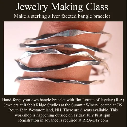 Fri., July 18 "Bangle Making Workshop" with Jim Lorette of Jayelay (JLA) Jewelers at Rabbit Ridge Studios at the Summit Winery (1pm-3pm)